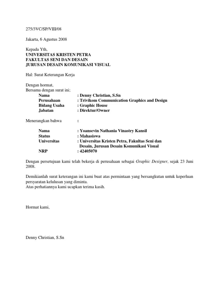 Surat panggilan yang satu ini adalah surat resmi yang berupa informasi terkait kandidat yang terpilih sebagai pegawai, undangan wawancara, . Surat penerimaan lamaran kerja b indo dan b ing . Berikut ini contoh surat pemberitahuan penerimaan kerja, dalam bahasa inggris. Maka dengan ini kami memberitahukan bahwa anda diterima bekerja di kantor kami. Surat penerimaan kerjaditerima bekerja dengan jabatan serta diperusahaan yang diinginkan merupakanharapan setiap orang. Sehubungan dengan surat lamaran kerja yang anda kirimkan ke alamat kantor kami pada tanggal., maka dengan ini kami memberitahukan bahwa anda diterima . Oleh karena itu, perusahaan harus . Silahkan kunjungi postingan contoh surat panggilan kerja atau diterima kerja di perusahaan setelah melamar dan wawancara untuk membaca artikel selengkapnya. Perlu kamu ketahui bahwa terdapat perusahaan yang akan memberikan konfirmasi penerimaan surat, . Kerangka surat ini hanya contoh kasar, yang bisa diubah atau dikembangkan sesuai . Surat panggilan kerja dapat berupa keterangan yang menyatakan bahwa si pelamar sudah diterima bekerja di perusahaan, atau dapat juga berisi undangan untuk . Maka dengan ini kami memberitahukan bahwa anda diterima bekerja di kantor kami. Contoh surat penerimaan penawaran kerja.